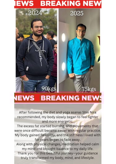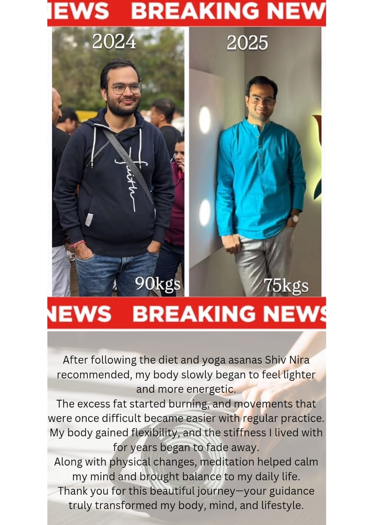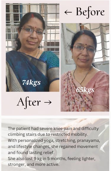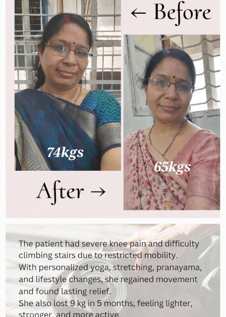 No pains into knees, feeling light. Thanks for the diet and yoga sessions